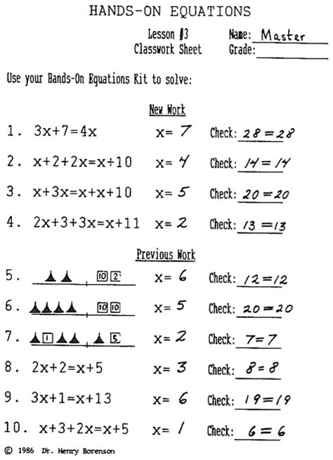 Providing a step-by-step guide, the Hands-On Equations answer key breaks down the solving process, ensuring that learners navigate through each equation with confidence. This systematic approach cultivates a deeper understanding of the underlying principles, turning algebraic challenges into manageable steps.